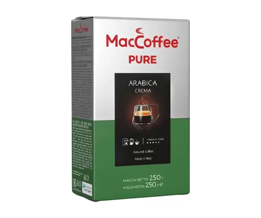Cafea măcinată, gust pur de cafea 100%- Arabica - cea mai premium calitate de cafea, fără impurități. Ideal pentru consum pur. Are note de ciocolată cu lapte și fructe coapte.